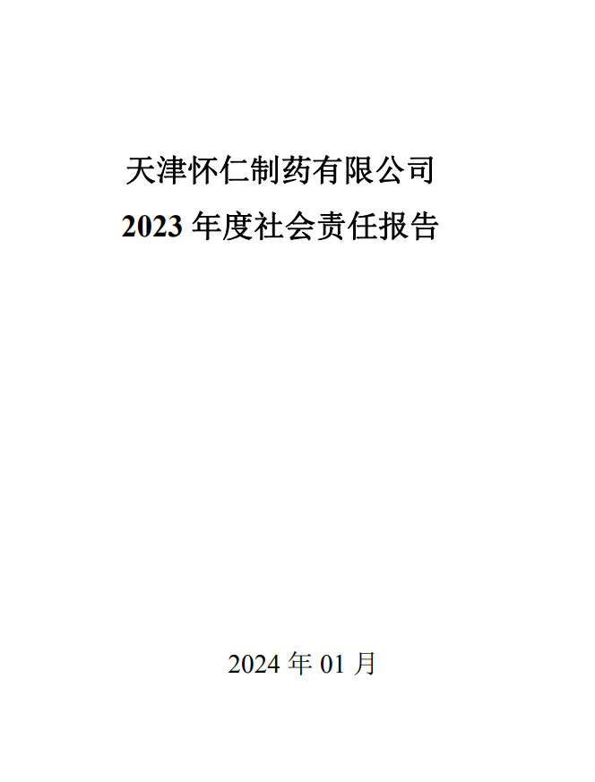 天津懷仁制藥有限公司2023年度社會責(zé)任報告